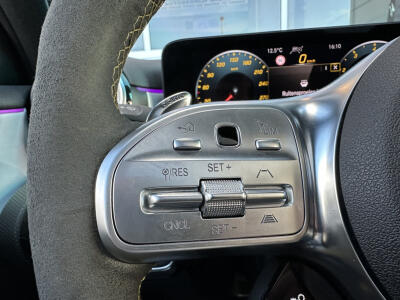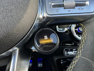 Binnenin voel je meteen de luxe: de sportstoelen omarmen je, het AMG-stuur ligt perfect in de hand, en het infotainmentsysteem met Apple CarPlay en Android Auto houdt je verbonden. Het panoramadak laat het licht binnenstromen en versterkt het gevoel van ruimte en vrijheid.